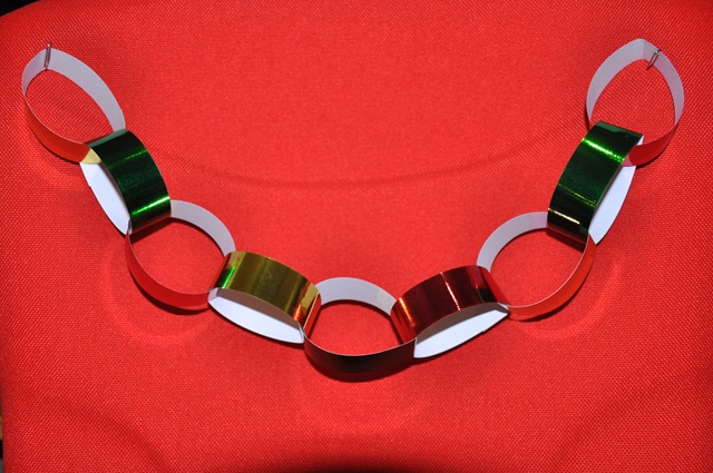On the 9th day of decorating from the chair we draped NINE paperchains.
