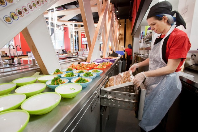 Things are different inside the kitchen, too. Fresh prep and ingredients calls for totally reliable refrigeration and at the Market Place site Yo! Sushi found they had a problem. The galley-style shape of the kitchen area meant that the traditional refrigerated prep counters their chefs rely on elsewhere were out of the question – they were too big to fit.