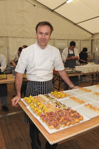 The temporary catering facilities were set up in a huge marquee in the grounds of Cotworth Park, Ascot. Stones Events, who were in charge of the catering, had a team of 70 staff including chefs, waiting and bar staff to serve afternoon tea and dinner to 250 people each day.