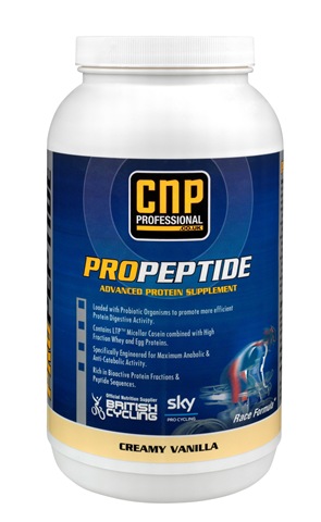 For cyclists, Pro Peptide offers a fast and convenient way to boost protein intake which aids in muscle repair and recovery. CNP recommends that approximately 2g of protein per kilo of bodyweight should be consumed for optimum performance. However this amount of protein is difficult to consume effectively through conventional foodstuffs.