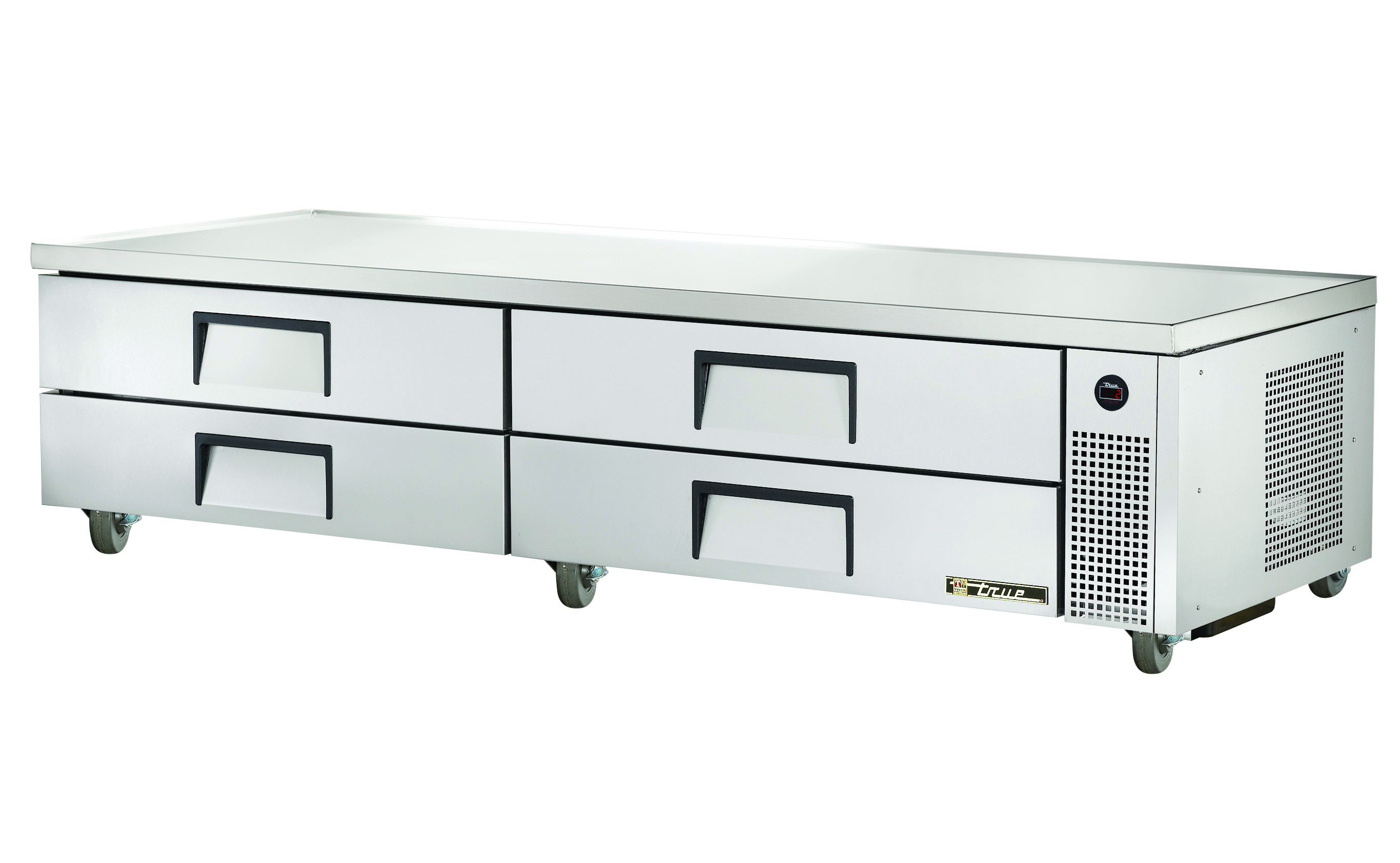 Refrigerated units with drawers are an energy conscious and convenient option for the commercial kitchen. Less cold air escapes when they are opened and they are easy to organise. To increase layout options in the kitchen, True has designed a refrigerated, drawered chef base that has such a high standard of insulation and strength it can support equipment for charboiling, grilling or frying with no loss of performance.