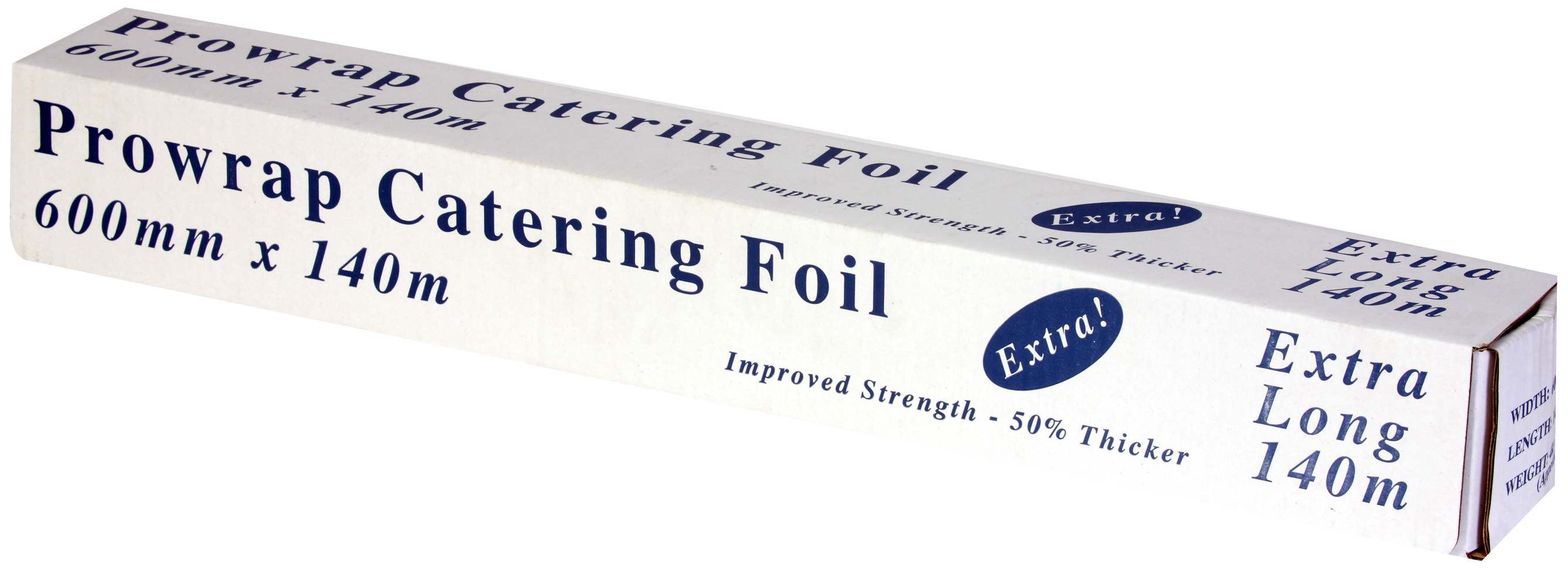 Prowrap premium foil comes in a sturdy dispensing pack and is available as either 300mm x 75mm or 450mm x 75mm rolls and either extra or ultra thick. There is also a bigger 600mm x 140 mm roll in the extra thick range.