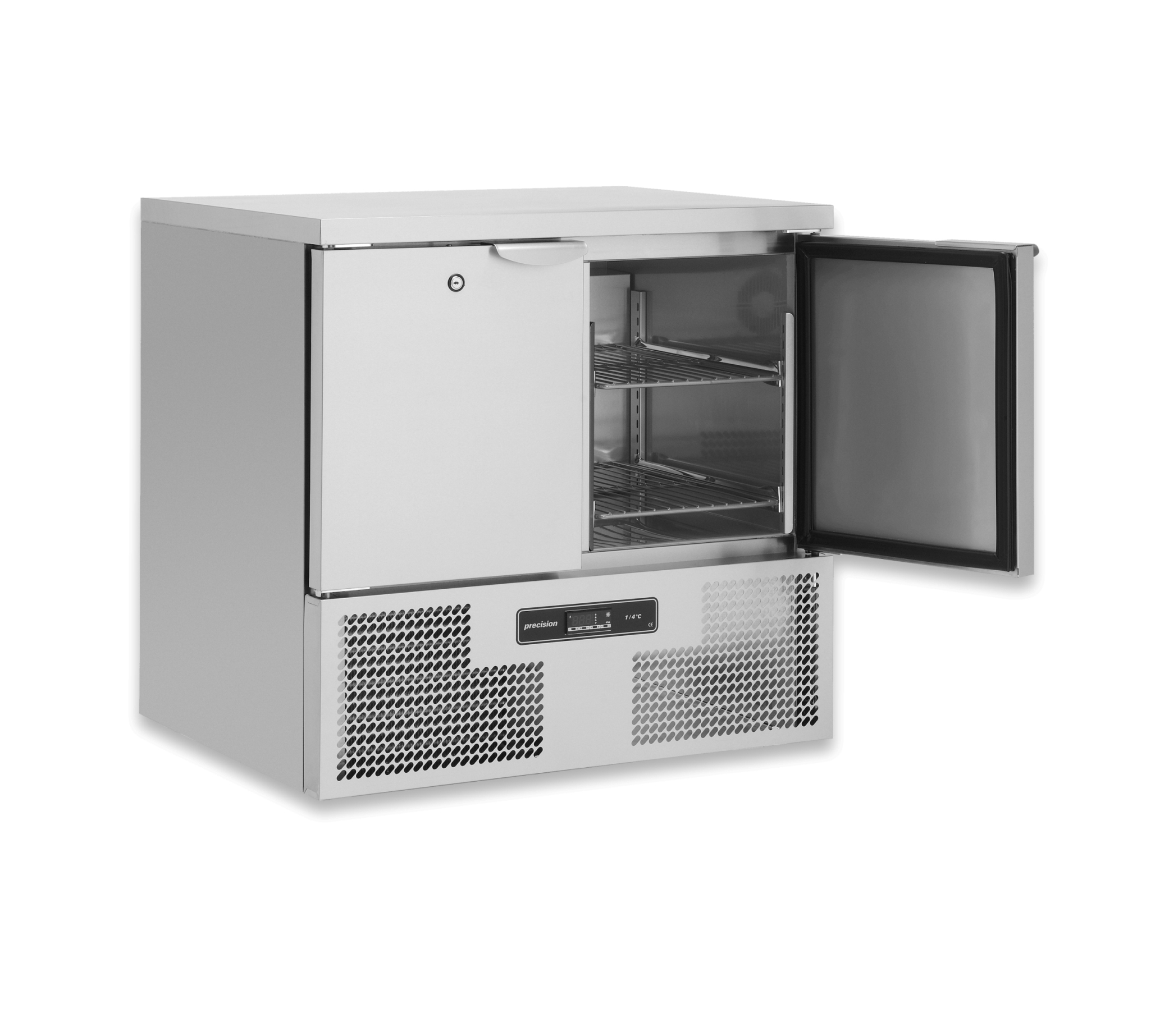 Options include open ingredient wells, with or without insulated lids, which turn the standard Space Saver cabinet into a prep station. As well as chilled (1 to 4C) and deep freezer (-18 to -22C) versions, Precision offers the Space Saver as a VT (variable temperature) cabinet, which can be switched from chilled to frozen at the touch of a button. Hydrocarbon refrigerant versions are also available.
