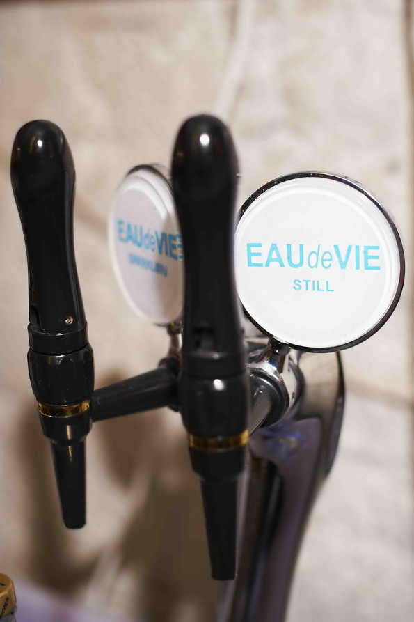 The Eau de Vie package uses a special filter system, known as SilverSix, to remove impurities from the mains water, which can otherwise adversely affect the water’s taste and smell.  The filtered water is then chilled and dispensed from a tap, in still or sparkling variants.
