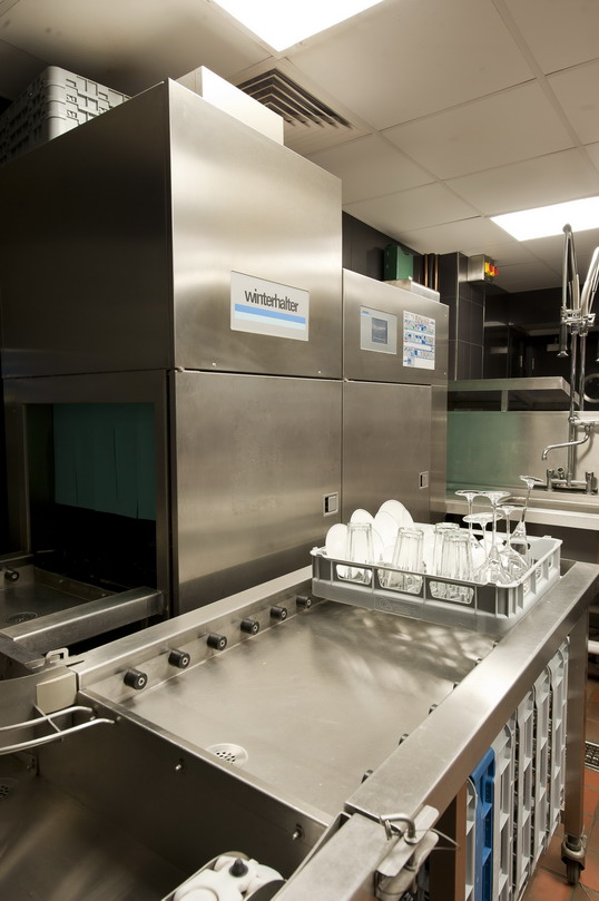 The number of warewashers needed for The Arts Club reflects the sheer size of the catering operation. Winterhalter supplied an MTR high volume rack conveyor system in the basement, which looks after the main restaurant; a GS500 pass-through on the first floor, looking after the private members’ restaurant; a utensil washer for the pastry kitchen; three undercounter glasswashers in the bars and waiter stations; and an undercounter utensil and cutlery washer in the main kitchen.
