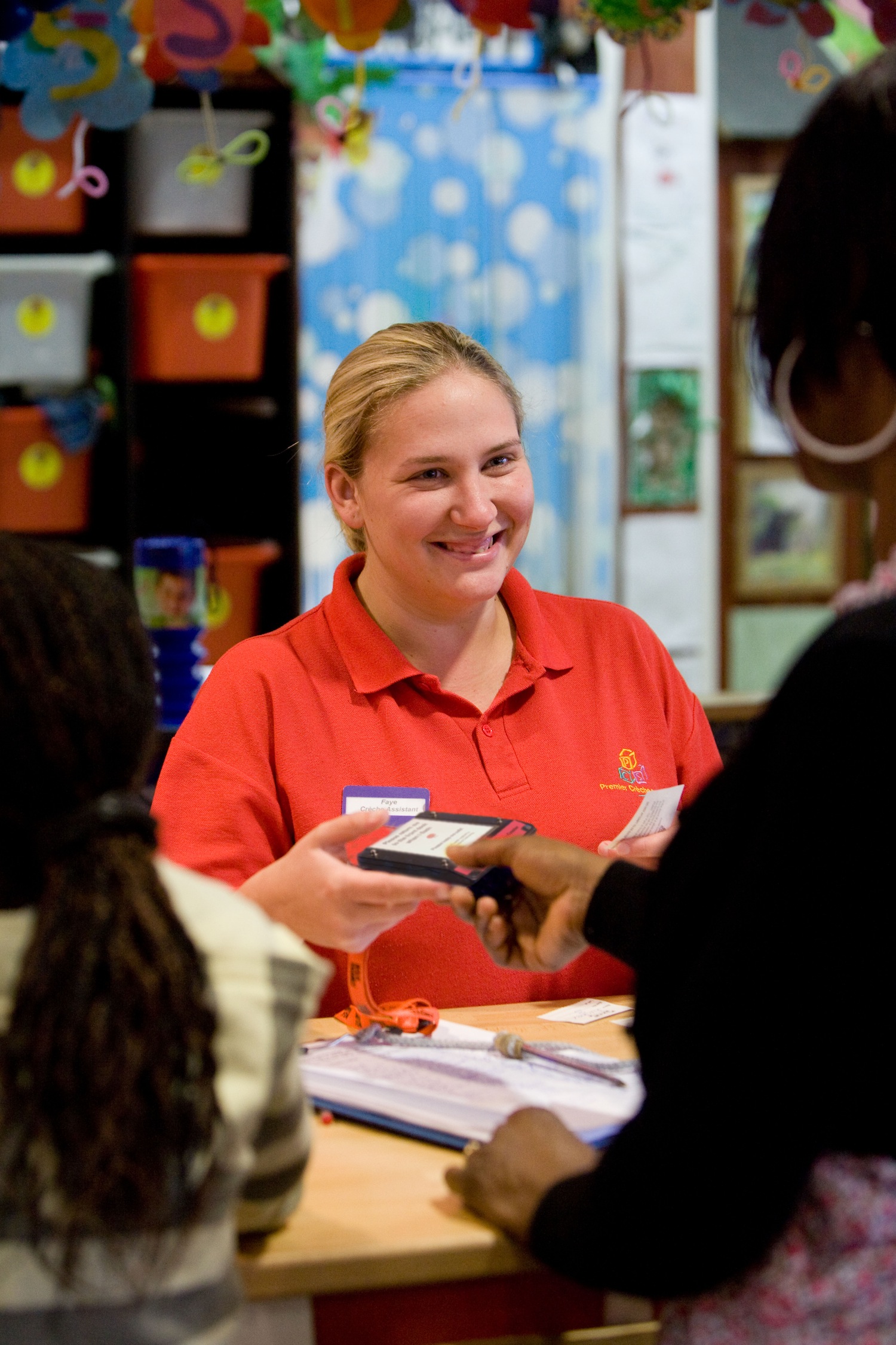 Customers are given a pager and can then leave the ‘queue.’ Staff press a button on the system’s base station to send a message to the pager when it’s time for customers to return.