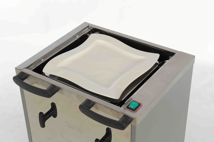 The new crockery dispensers are simple to use – lift off one plate or bowl and the next one automatically pops up into position. An adjustable spring allows for repeated pop-ups. The exterior panels are made of durable Merlin grey plastic coated steel with the interior finished in bright polished coated steel.