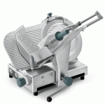 The Palladio 330 EVO deli slicer features a rounded design with no sharp corners or visible screws, as well as a completely sealed, stainless steel shaft and one-piece carriage. The seemless see-through hand guard prevents food particles from getting stuck in the machine.
