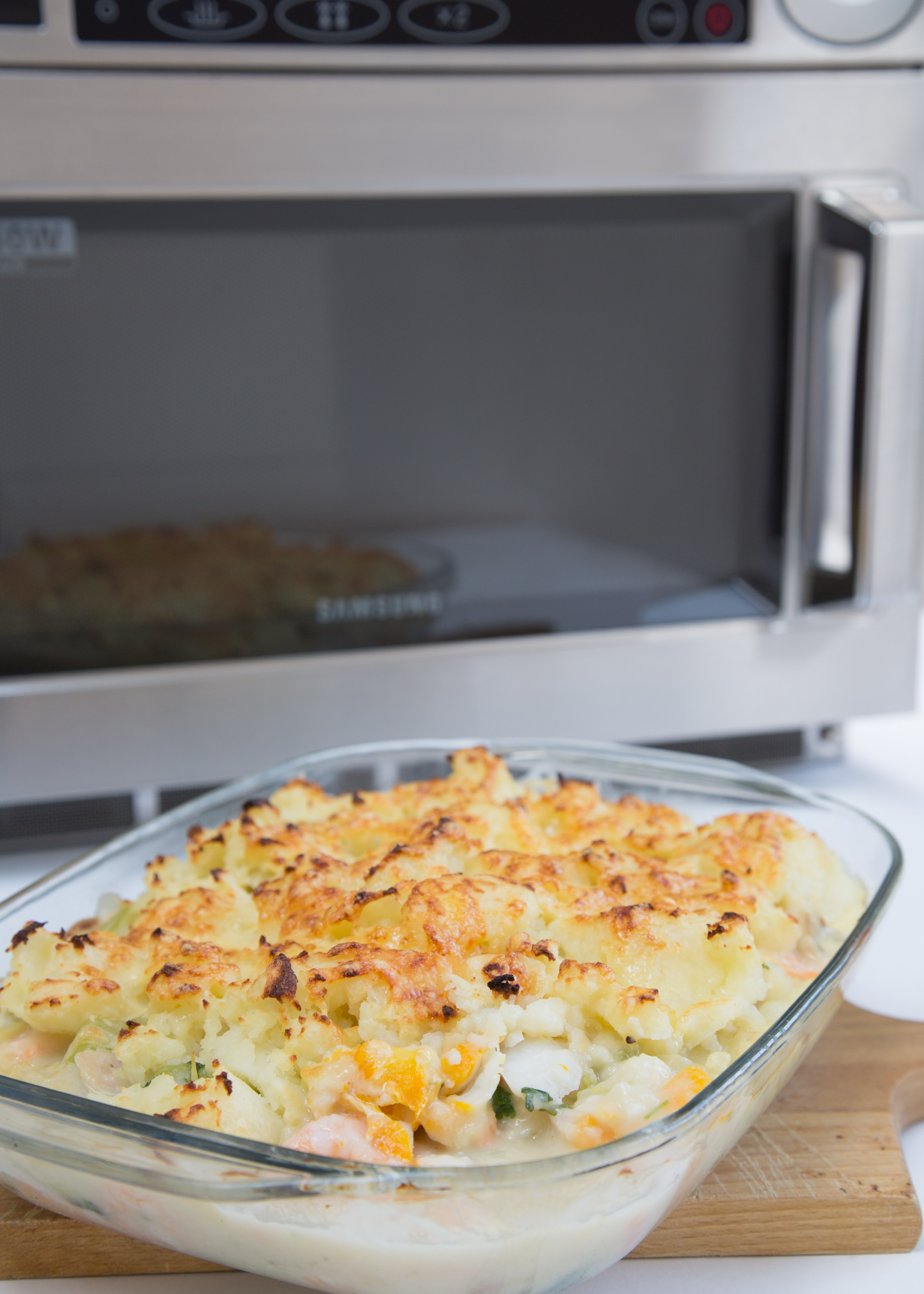 Samsung Professional Appliances’ online commercial microwave cookbook shows how easy it is to make a hearty fish pie in a microwave oven. This is especially useful when all other appliances are blasting away and the microwave is standing idle. The microwave is also a foolproof way of making a white sauce.