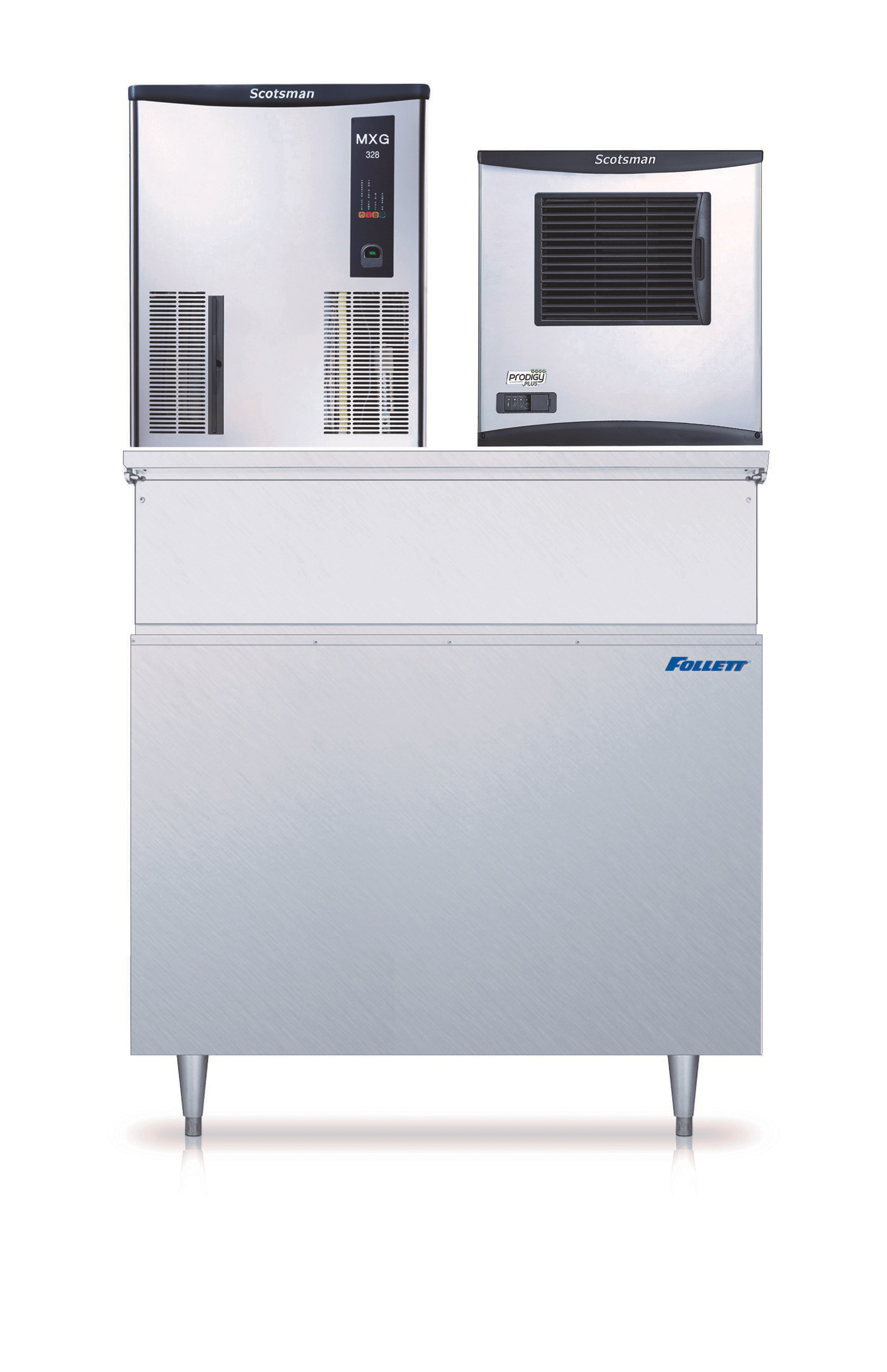 The Ice Duo sits two different modular ice machines onto a single ice storage bin. Each machine can produce different types of ice – the bin’s storage compartment has a divider wall that keeps them separate.