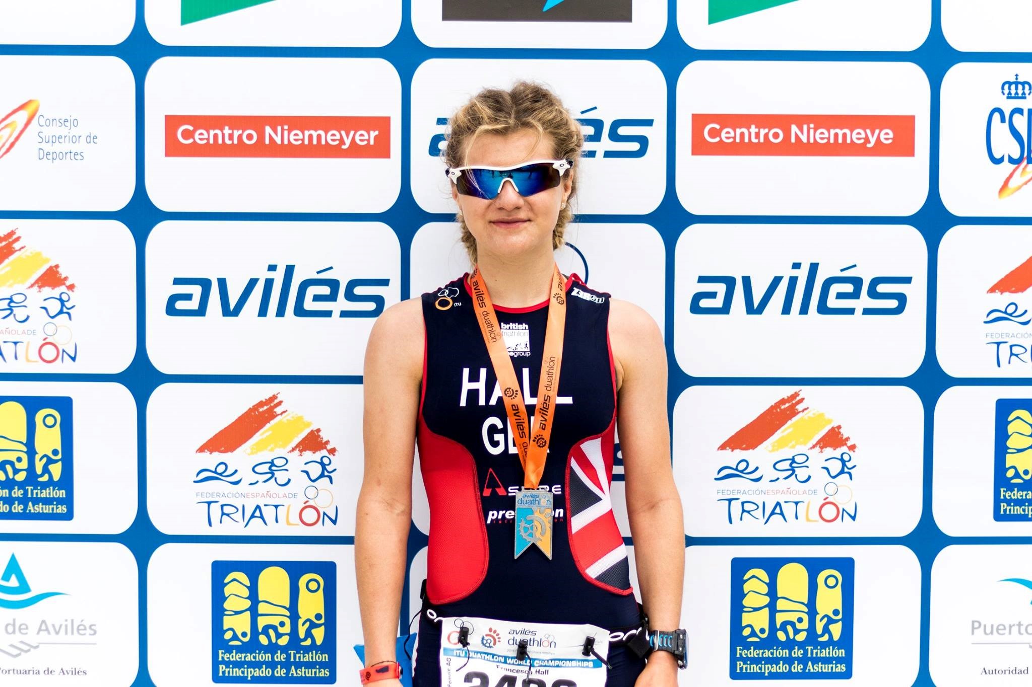 Francesca has just finished her first event representing Great Britain, the ITU Duathlon World championships at Aviles in Spain, where she finished fifth in her age group.