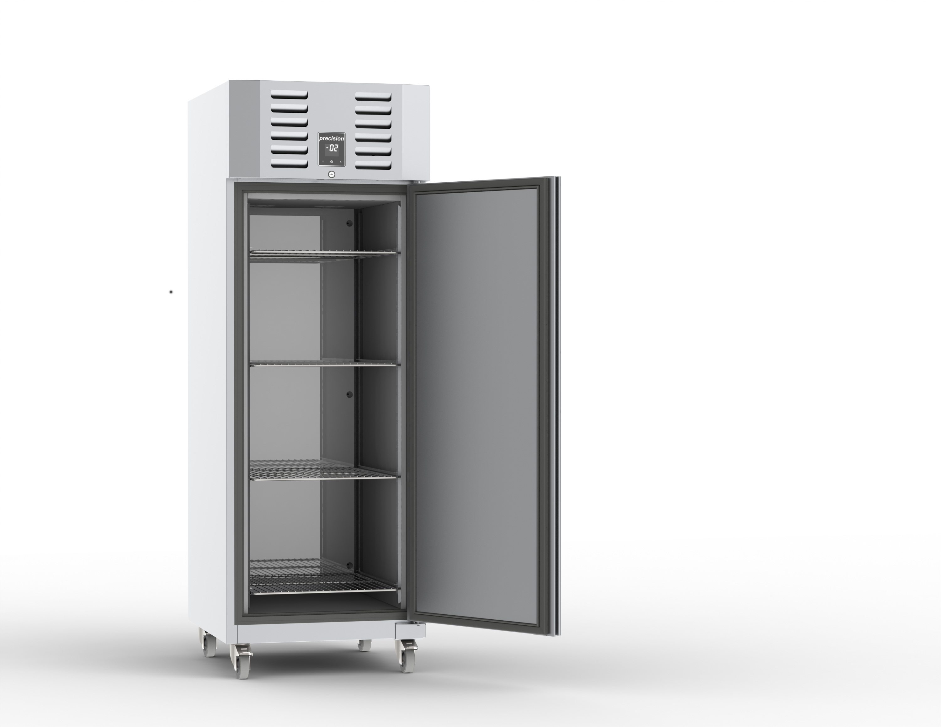 All Precision uprights are engineered to work in the toughest, busiest and hottest kitchen environments, up to 43°C. Their controls offer the flexibility to safely store meat, fish or general produce with internal temperatures of -2 to +4°C. They also have hot gas rather than off-cycle defrost, eliminating the risk of evaporator ice build-up, even in high ambient temperatures.