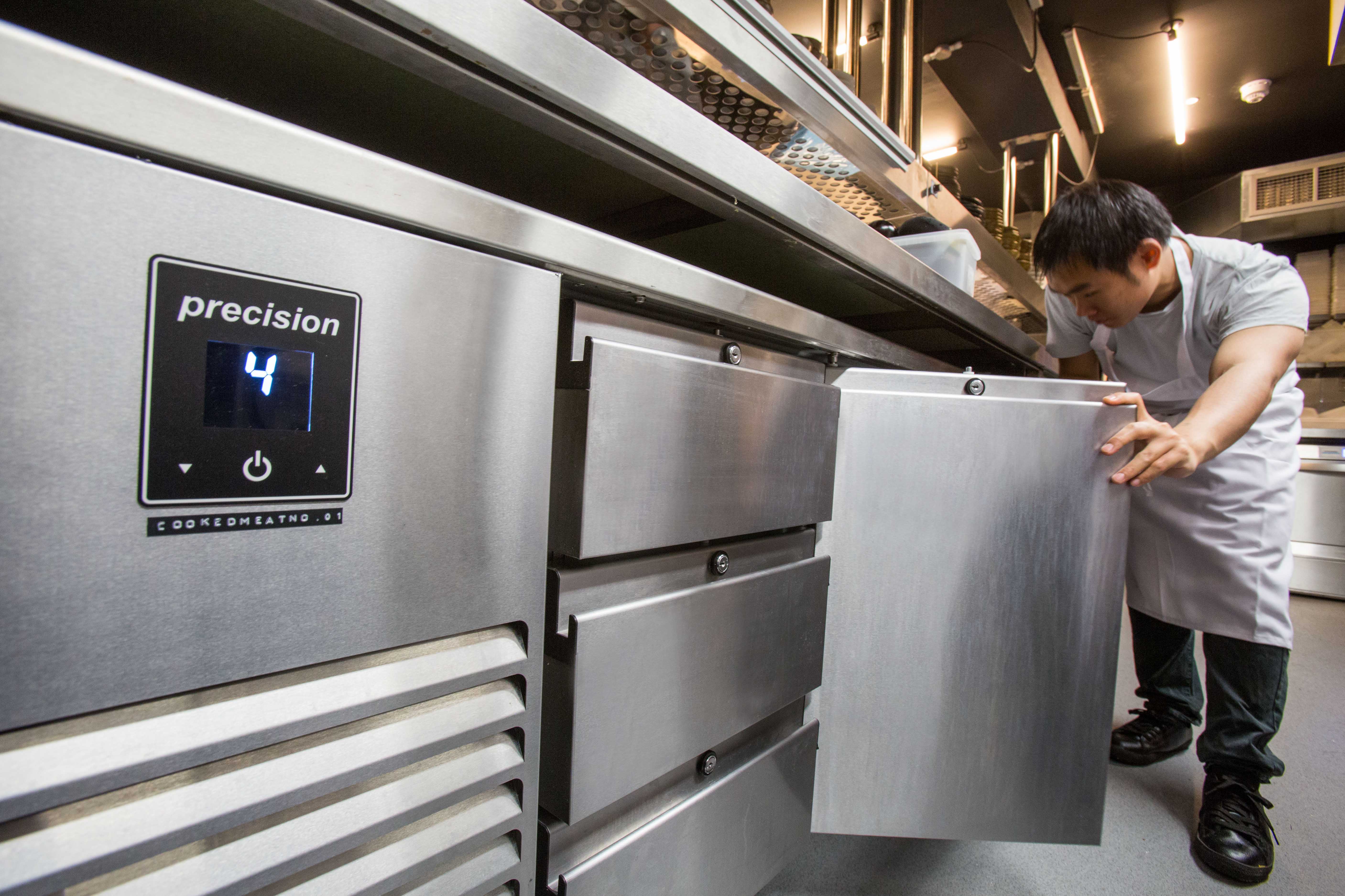 So many ingredients, so little room. “We had to fit nine cabinets into this kitchen,” says Rod. “Versatility became key in selecting to work with Precision, which has a vast product range. It allowed us to get maximum storage capacity in a very limited space. We made full use of gastronorm cabinets, slimline cabinets, under counters and variable temperature drawers. We also used Precision wall-mounted refrigeration cabinets and there’s even room for a blast chiller – all in just 25 square metres!”