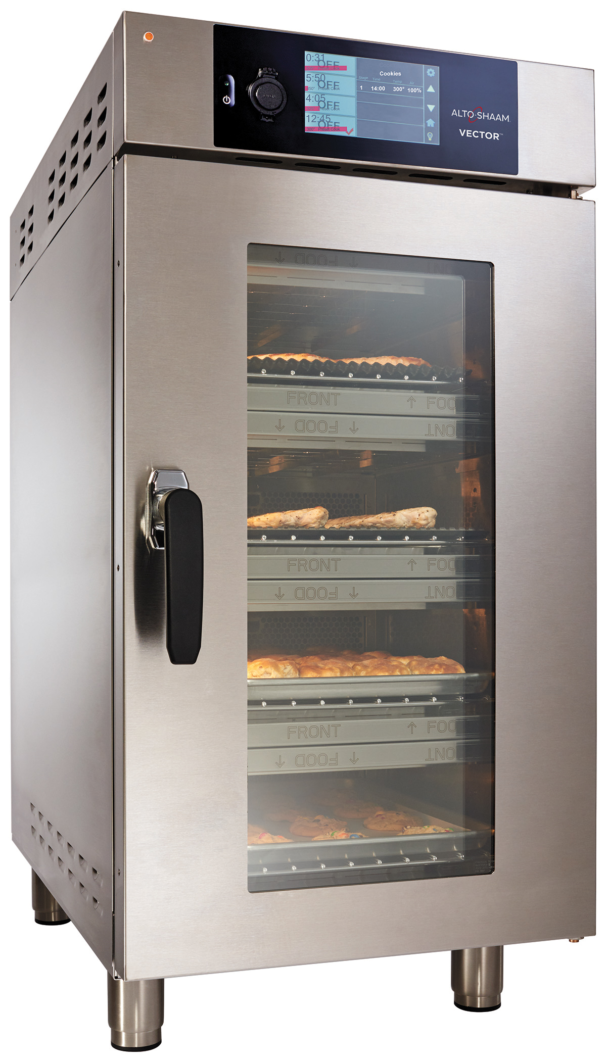 The Vector oven is easy to use, thanks to its intuitive touchscreen panel which can be programmed with pre-set recipes. When food in any chamber is cooked, staff are alerted with an audio alarm.