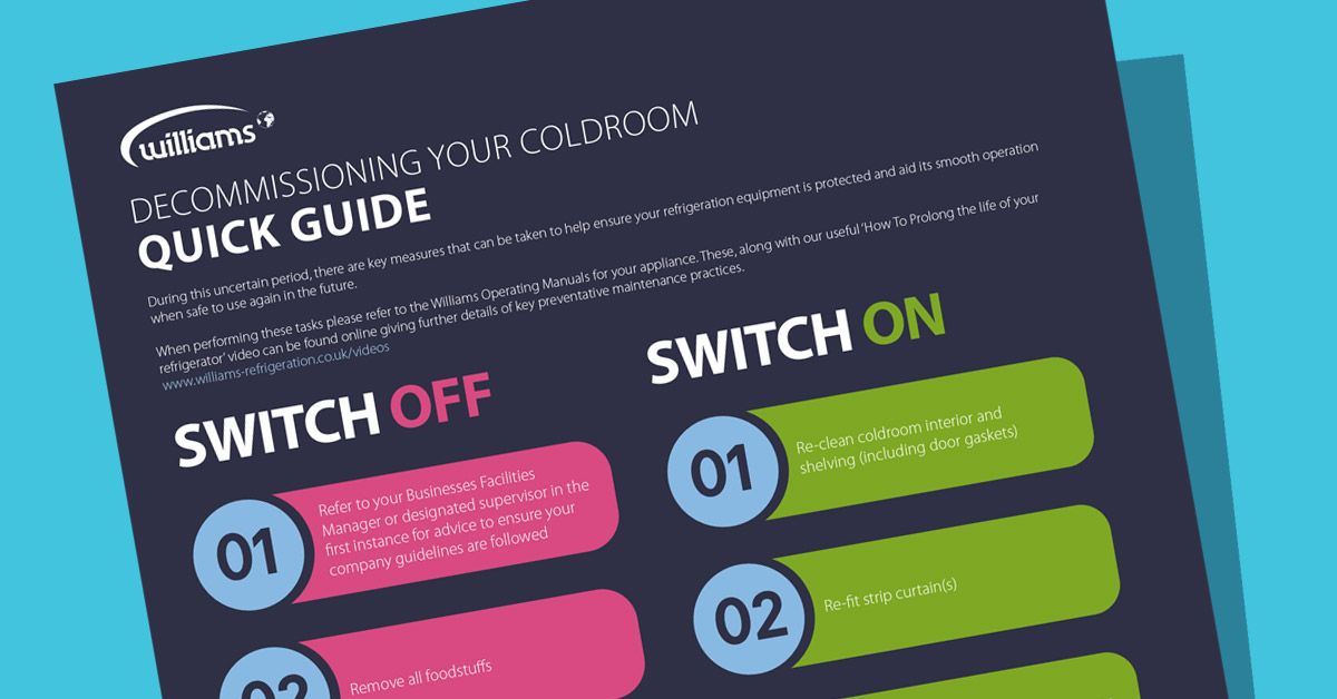 Williams has produced guides to decommissioning cold rooms, to go alongside its guides on freezers and refrigerators. The company has produced two versions of all the guides – a quick guide, which gives the essentials, and an engineer’s guide, which goes into more depth.