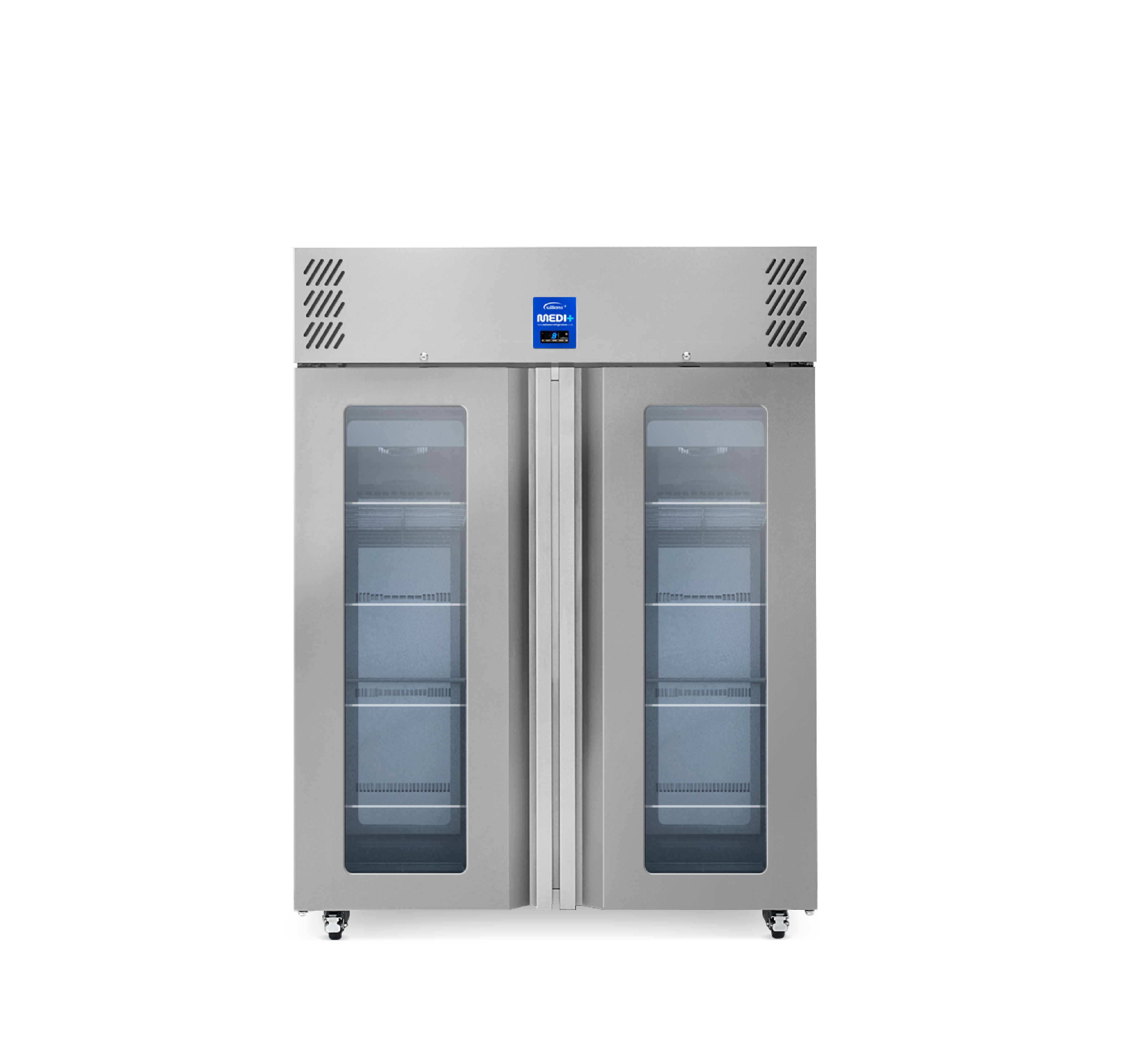The Medi+ two-door cabinet is an environment-friendly refrigerator using a natural hydrocarbon refrigerant that not only has low GWP (Global Warming Potential) and zero ODP (Ozone Depletion Potential) but also delivers superior thermal efficiency, reducing energy use. The cabinet features low heat, bright LED lighting, 80mm, high density foam injected insulation, and self-closing doors – all of which enhance its energy efficiency.